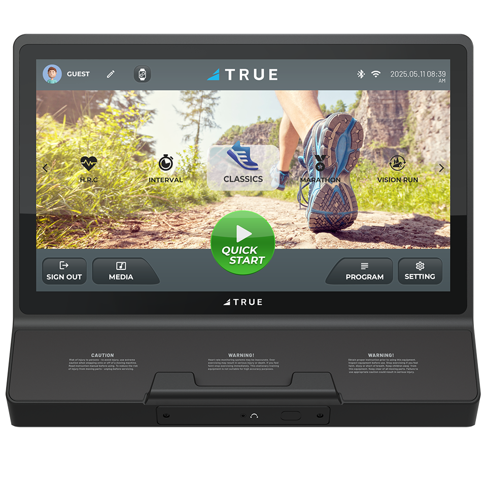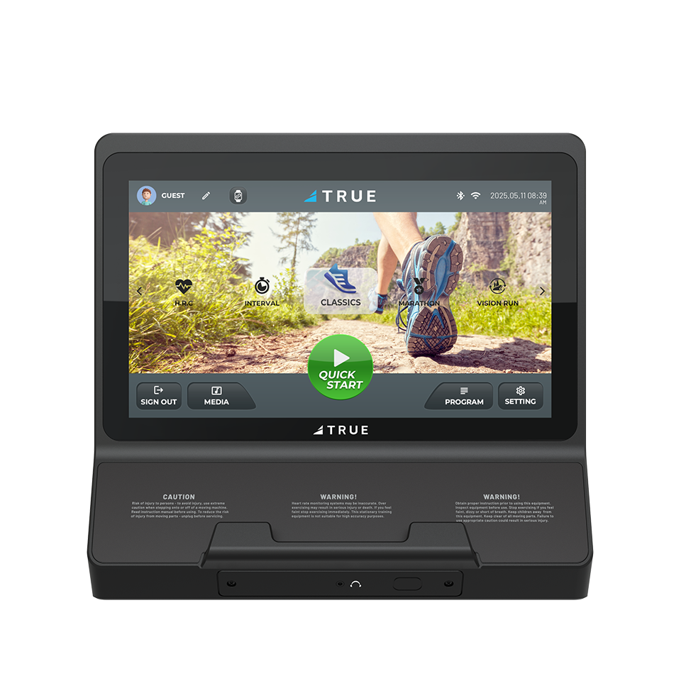 The 10″ touchscreen display features an intuitive home screen with up to 10 custom user profiles, built-in workouts, TRUE HRC® Cruise Control, wireless mirroring and HDMI ports, plus more.